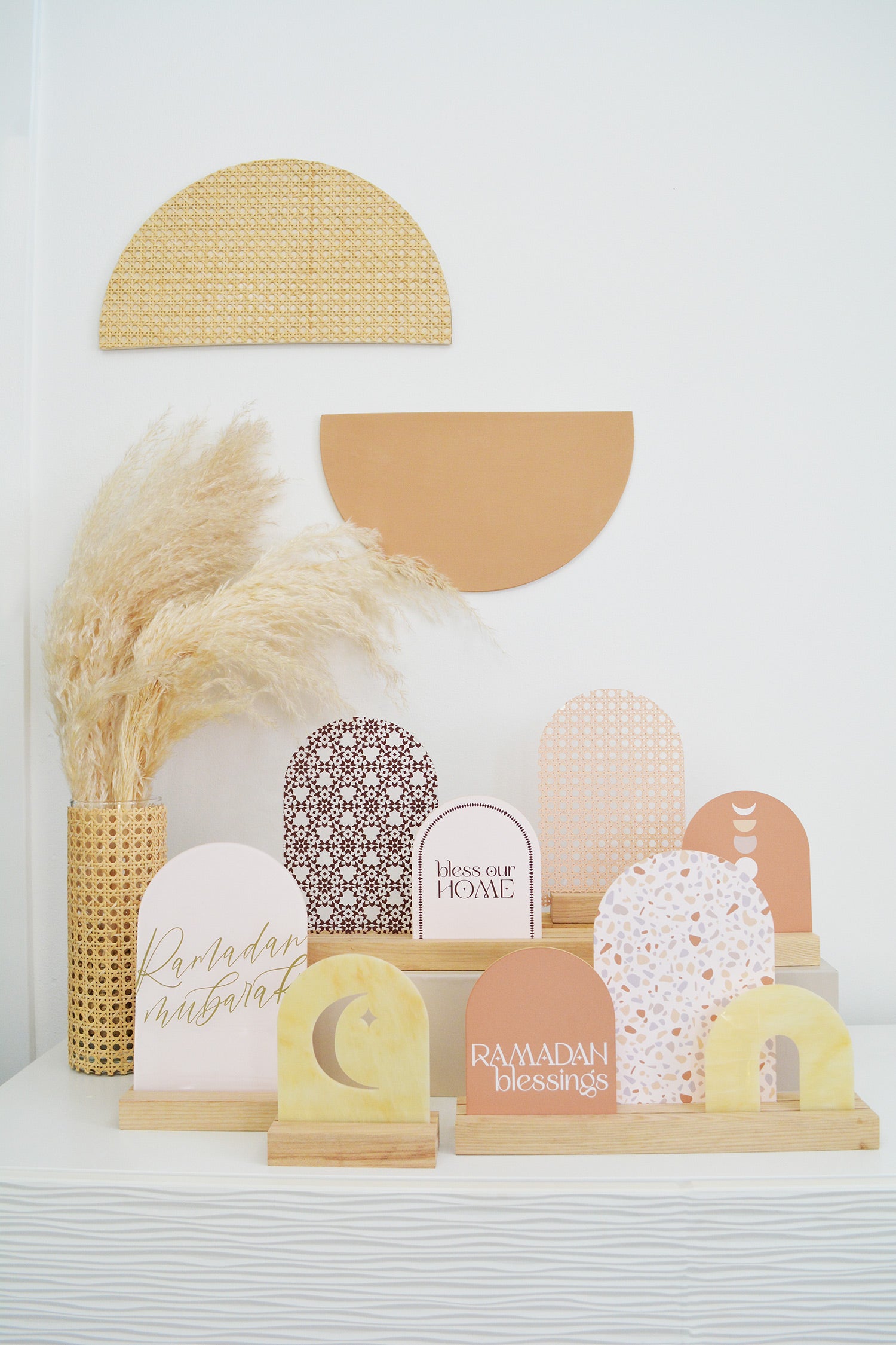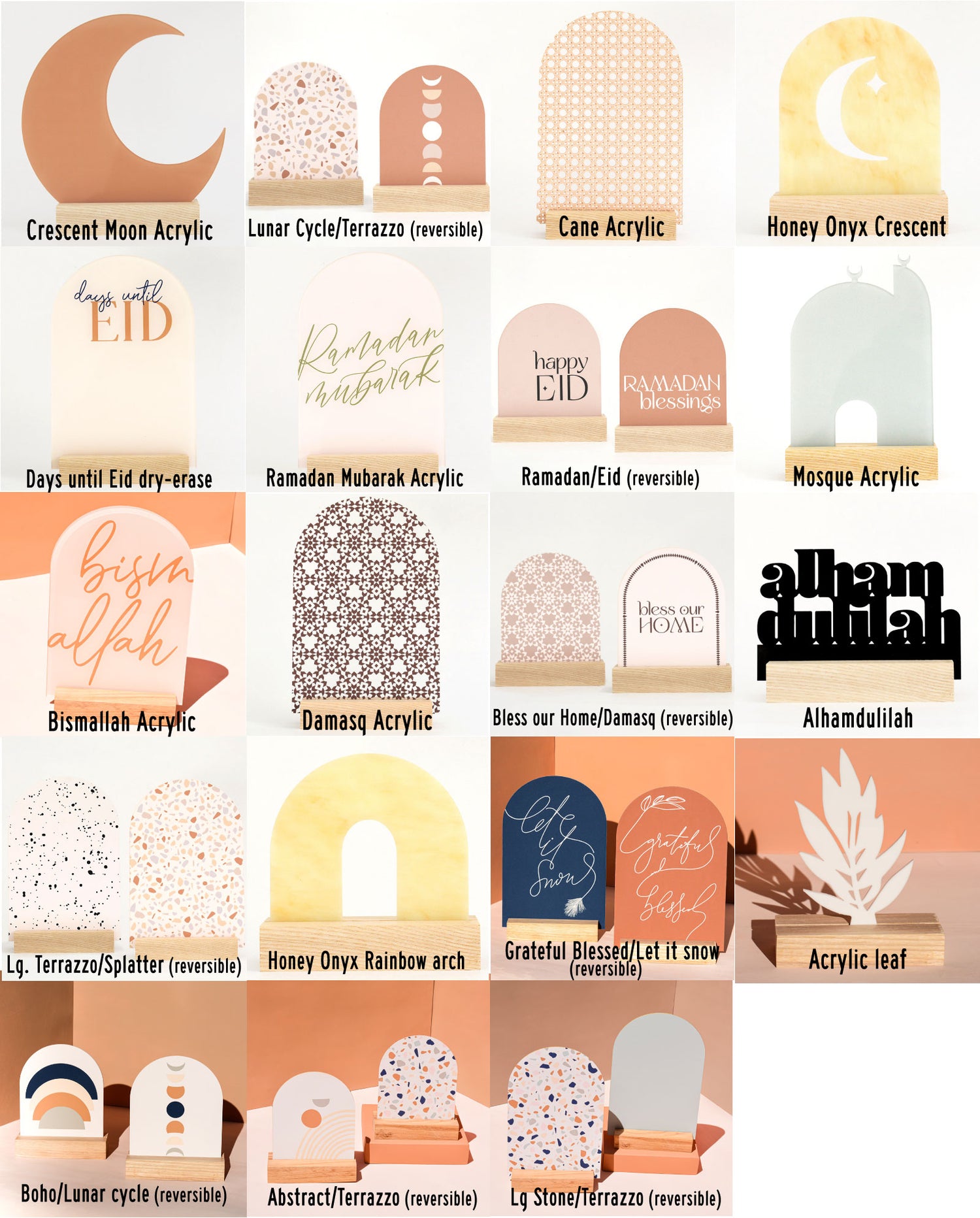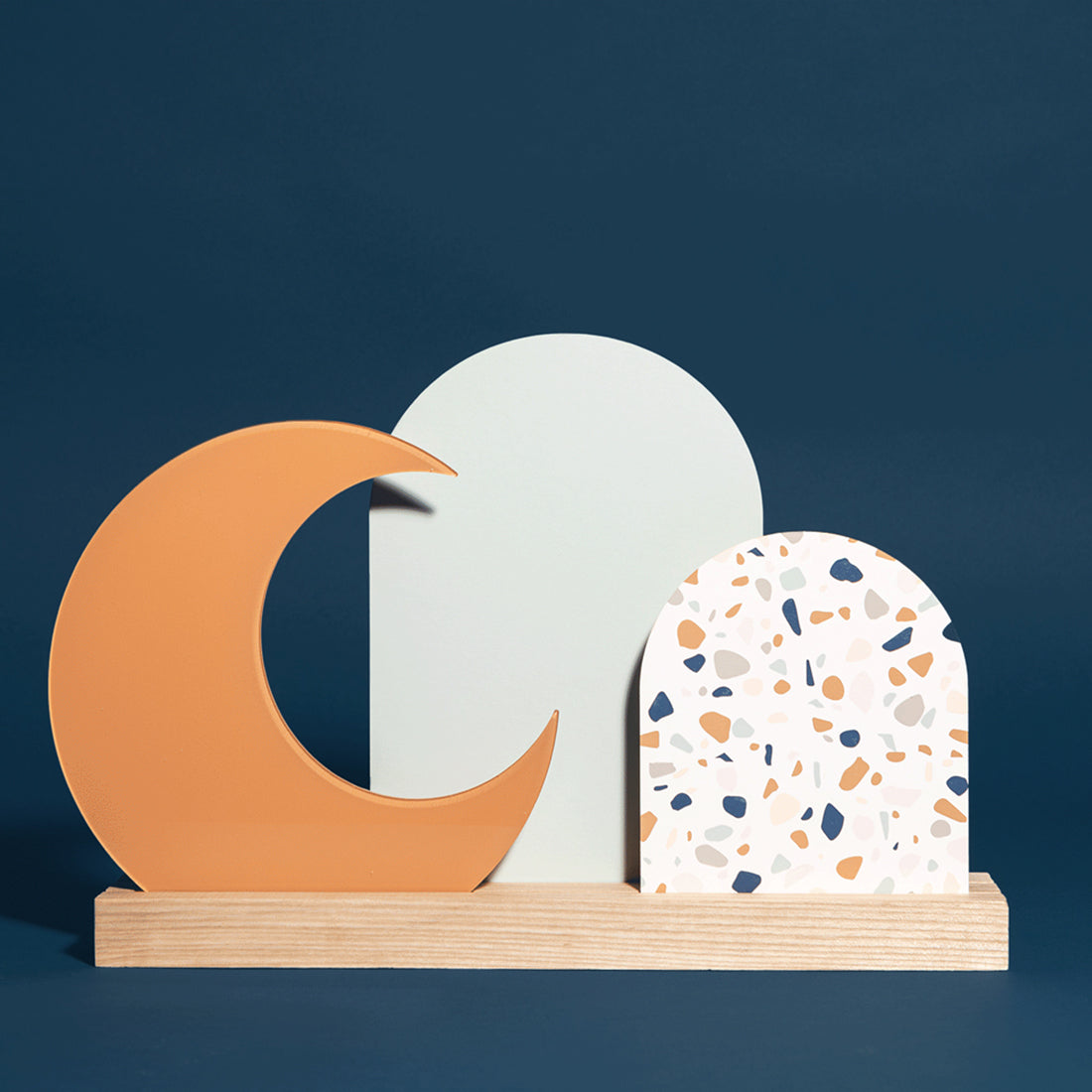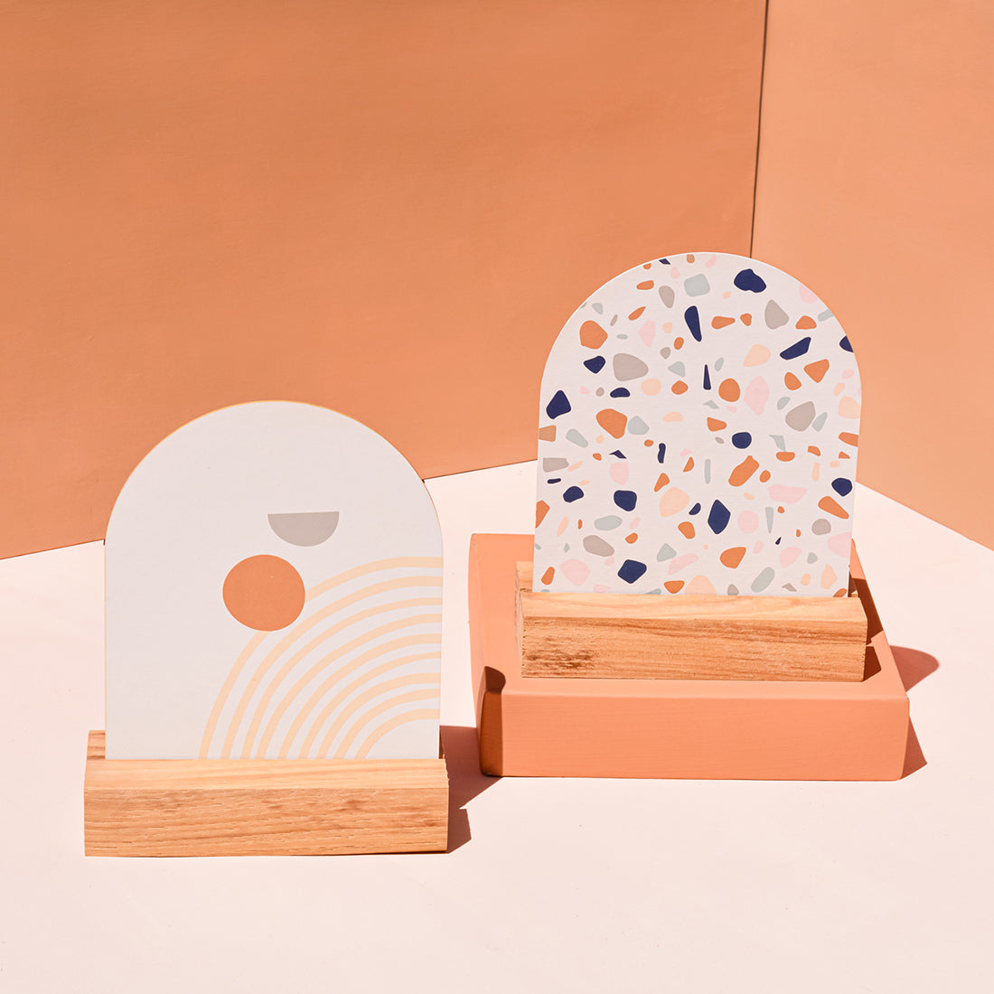 Pair this versatile small Abstract Art sign with either our large or small wood base set for a beautiful display. The screen printed board is reversible with a modern terrazzo print on one side and cream modern abstract art on the reverse. You can change it around for multiple of looks!