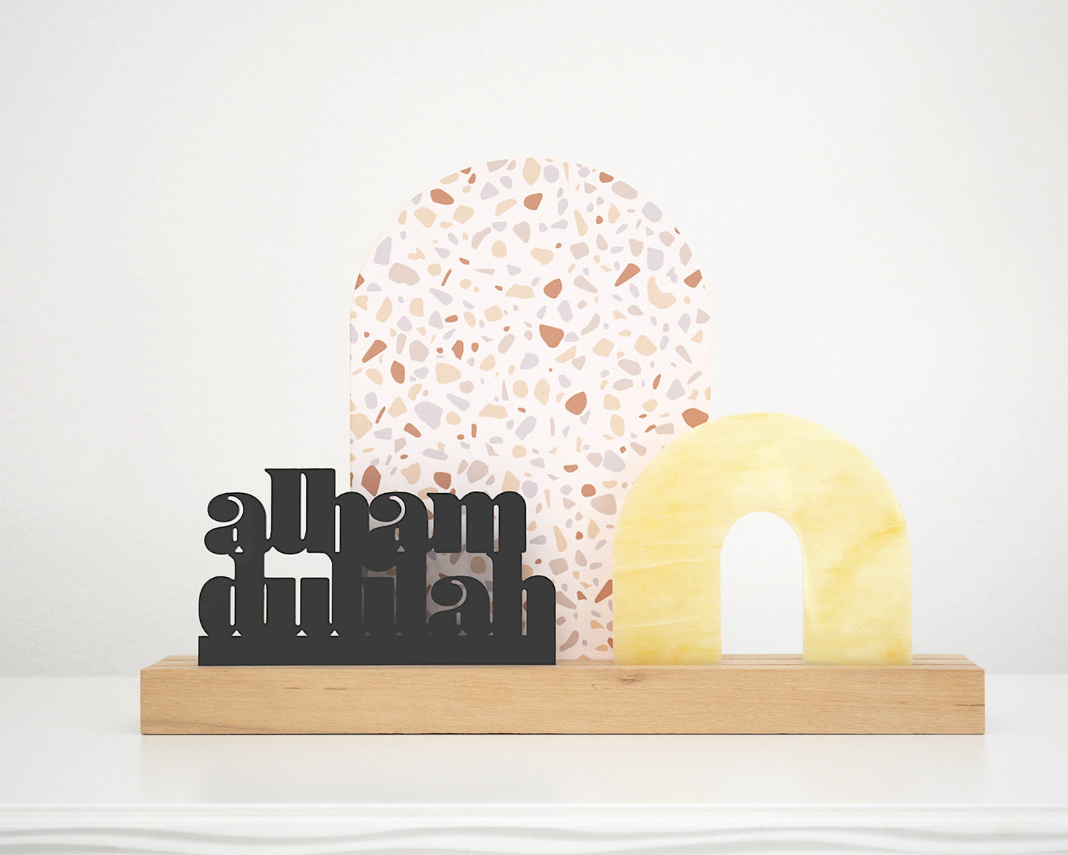 We’ve reimagined our Alhamdulilah acrylic sign for 2022! Pair this versatile small Alhamdulilah acrylic sign with either our large or small wood base set for a beautiful display. Available as part of a 3pc or 1pc set or purchase separately here to add on to your other pieces.