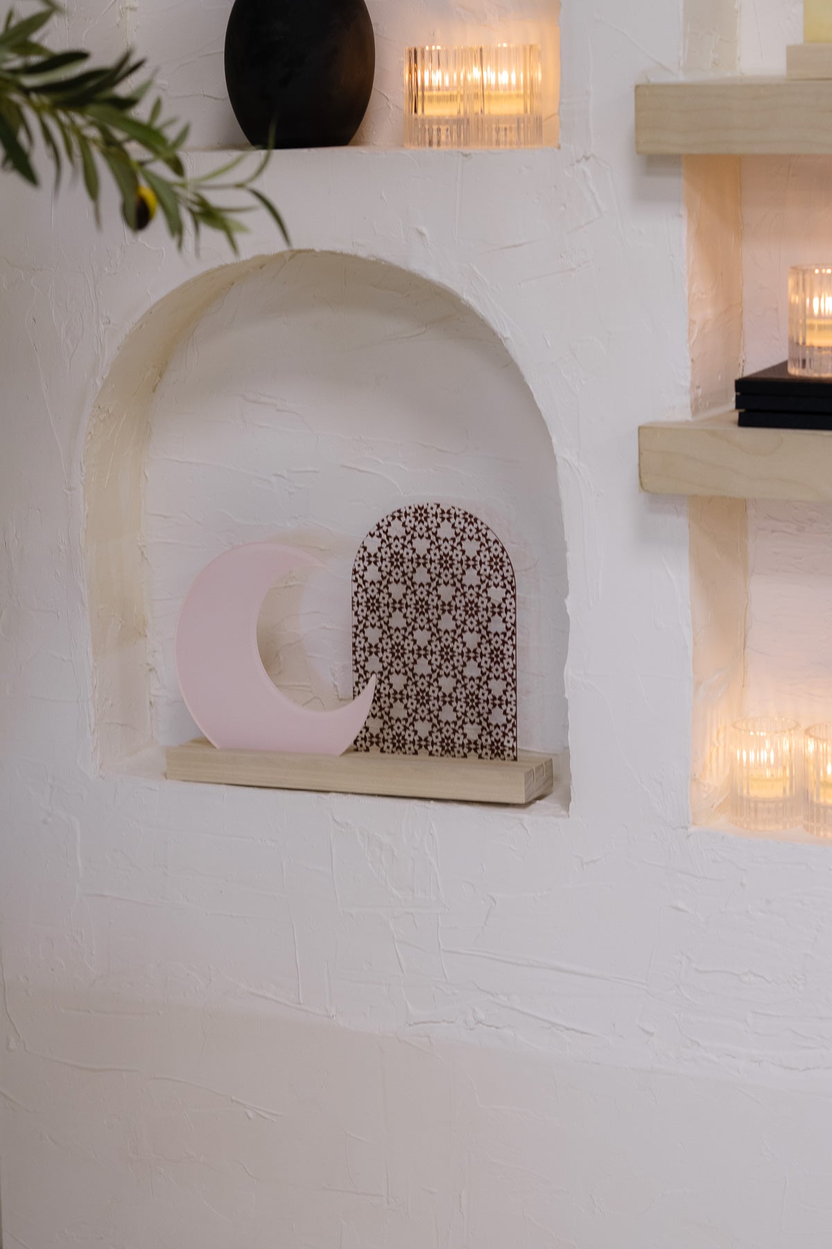 We’ve reimagined our Crescent Moon acrylic insert for 2024! Pair this beautiful Acrylic crescent moon, now in creamy Ivory, with either our large or small wood base set for a beautiful display (wood base sold separately).
