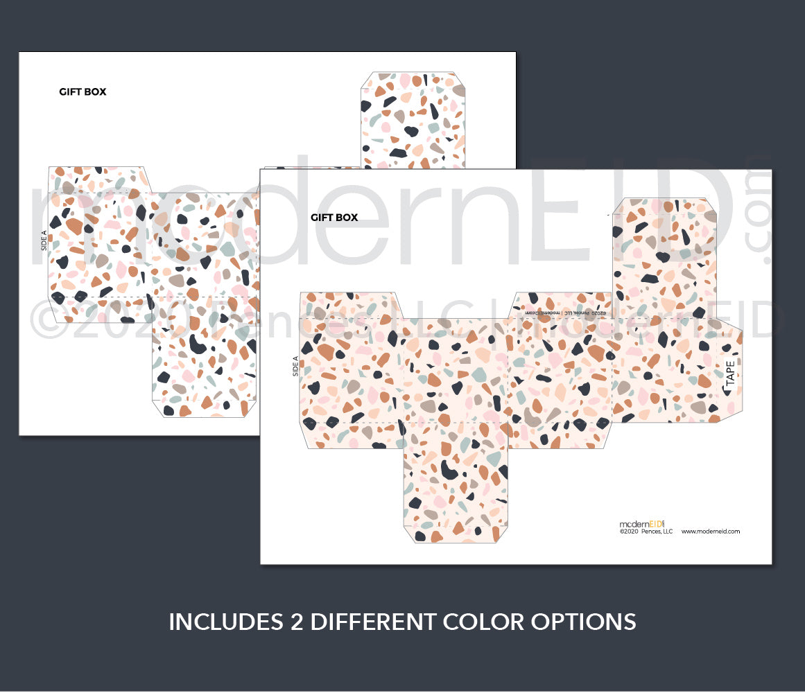 Our Terrazzo collection Gift Boxes feature our chic terrazzo stone design on a 2.5" cube box. Perfect for gifting small items, packing up treats, or use a favors for a party.