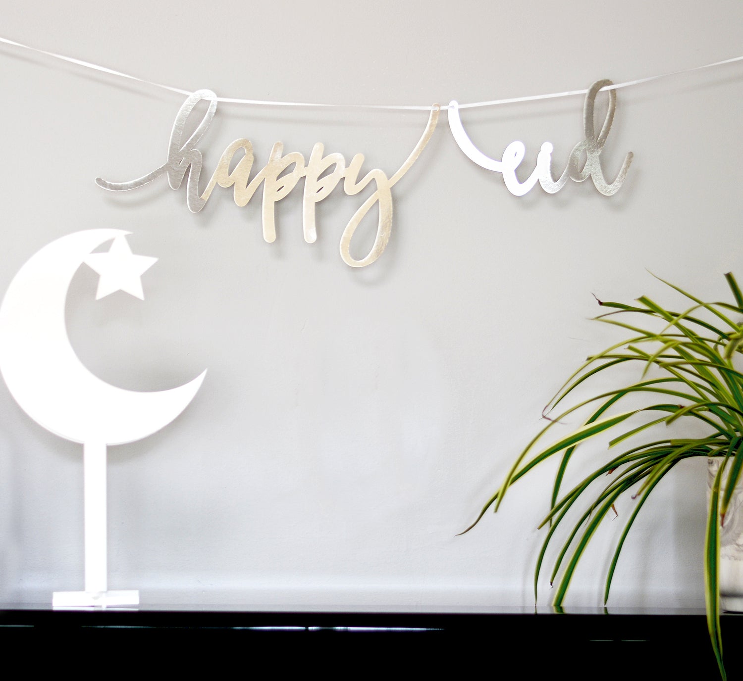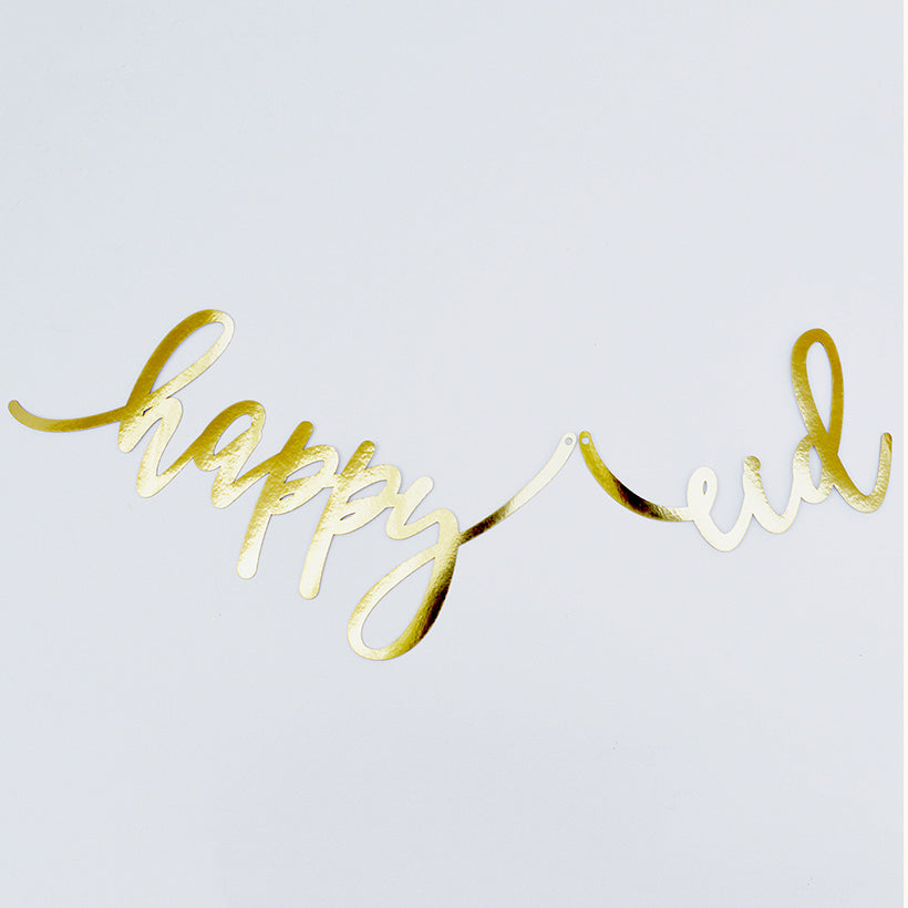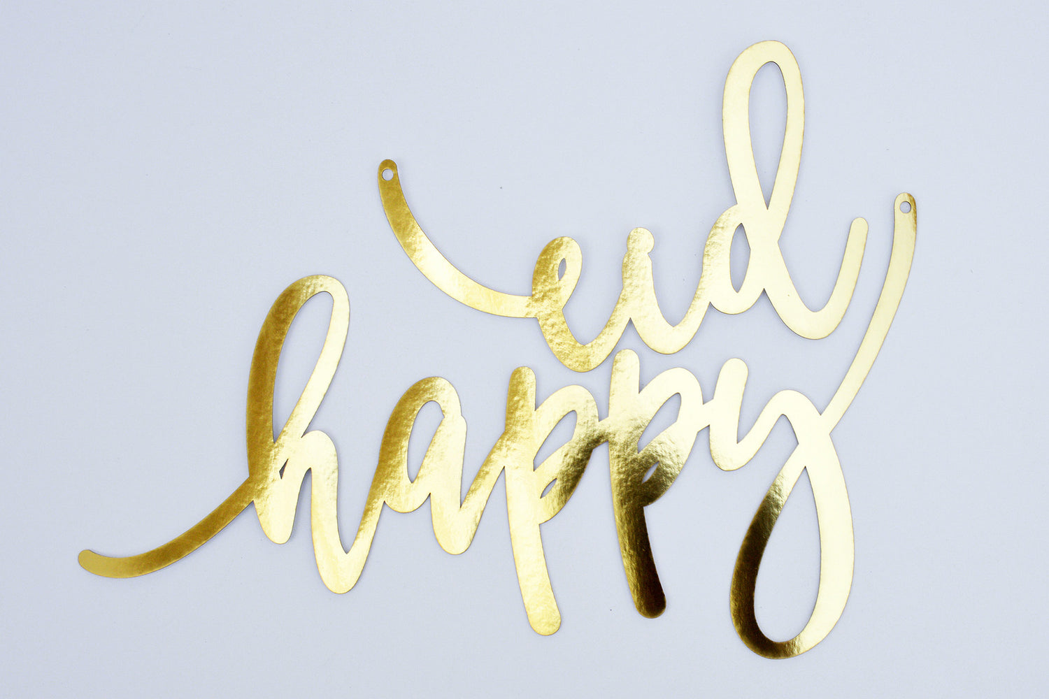 Our exclusive acrylic calligraphy banner has been re-imagained in a new luxe material. Two separate pieces in heavy weight foiled board that looks like luxe metal. Durable and reusable these can be hung directly on the wall, front door, used as part of a wreath or strung with ribbon and used as a banner.