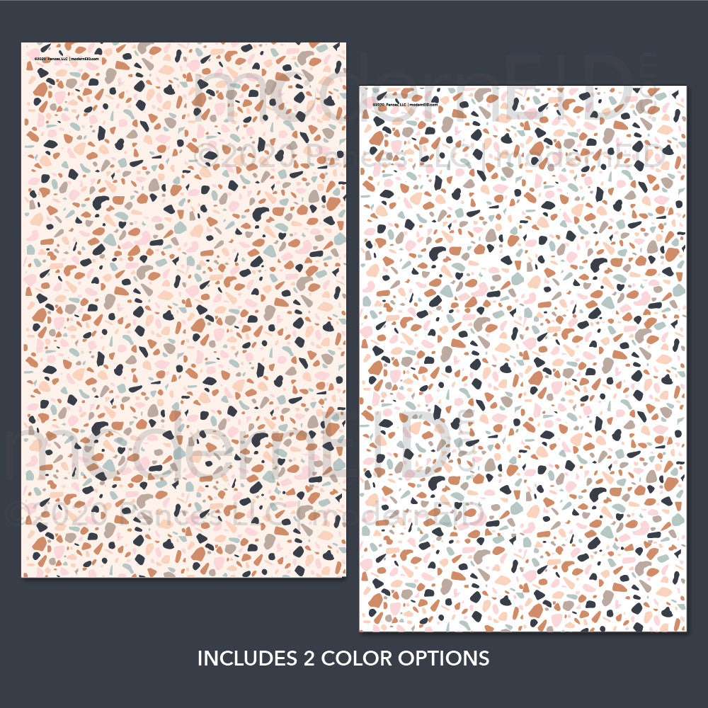 Our Terrazzo collection wrapping paper features our chic terrazzo stone design on a 8.5"x14" sheet. You can use it for wrapping small gifts, crafting, or even framed as a minimal art print.